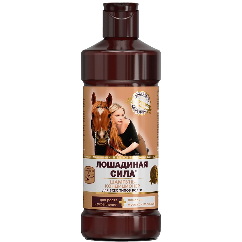 ЛОШАДИНАЯ СИЛА Шампунь-кондиционер для волос с коллагеном и ланолином, от выпадения, для роста и укрепления волос